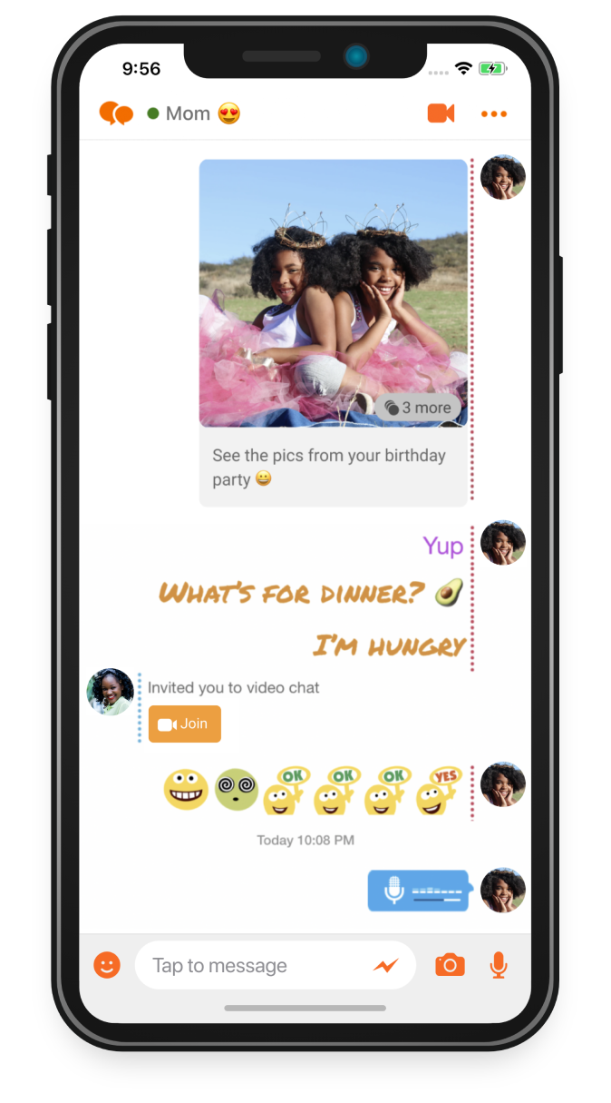Share photos, videos, or say Hello with audio messages. Hop on a voice or video call at anytime!